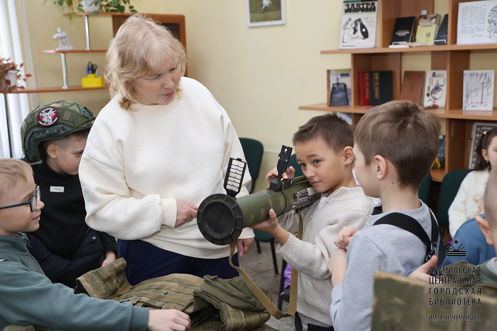 Но самым захватывающим моментом для малышей, безусловно, стала встреча с настоящими героями! Председатель Общественной палаты АГО совместно с нашими героями – Алексеем Волковым и Андреем Вахниным, бойцами 7-й Разведывательно-Штурмовой Бригады им. "Святой Георгий", представили детям трофеи из зоны СВО. Это был не просто рассказ, а живое общение, которое вызвало у ребят бурю положительных эмоций! Дети с восторгом слушали истории, рассматривали экспонаты и даже смогли примерить на себя элементы экипировки и трофеи. Глаза малышей горели любопытством и восхищением, а в их сердцах зарождалось понимание важности защиты Отечества.