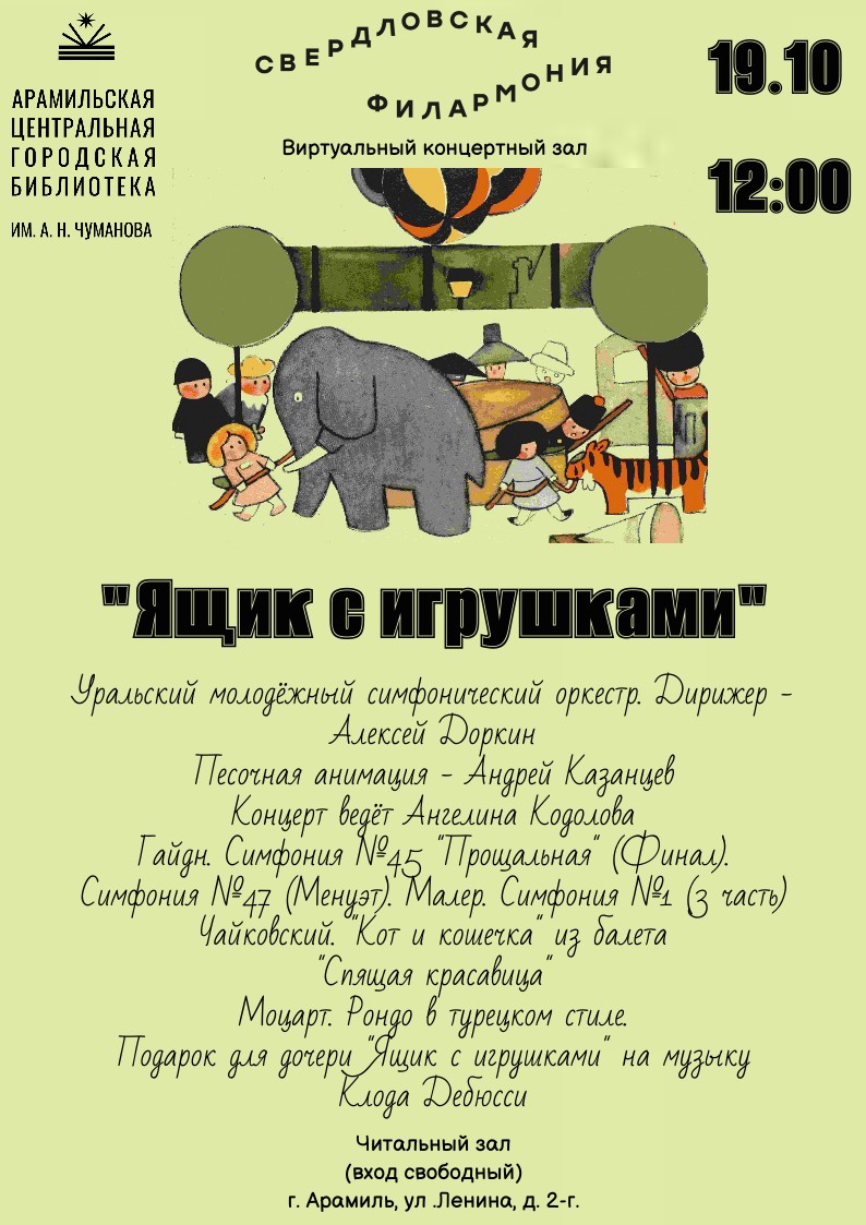 В 2019 году в Арамильской Центральной городской библиотеке открыт Виртуальный концертный зал (ВКЗ) Свердловской филармонии, организованный в рамках национального проекта «Культура».