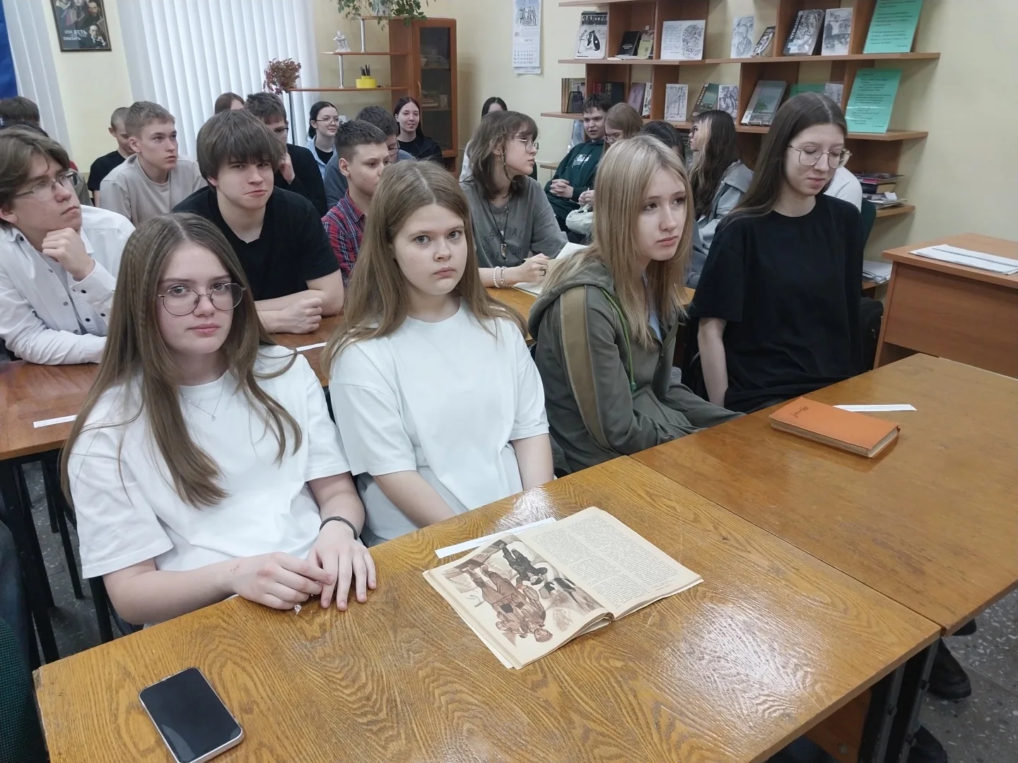 Урок литературы для учащихся 8-ж класса школы №1 прошел в Центральной библиотеке. Ученики и библиотекарь вели диалог: читали и обсуждали рассказ М. Шолохова «Судьба человека».