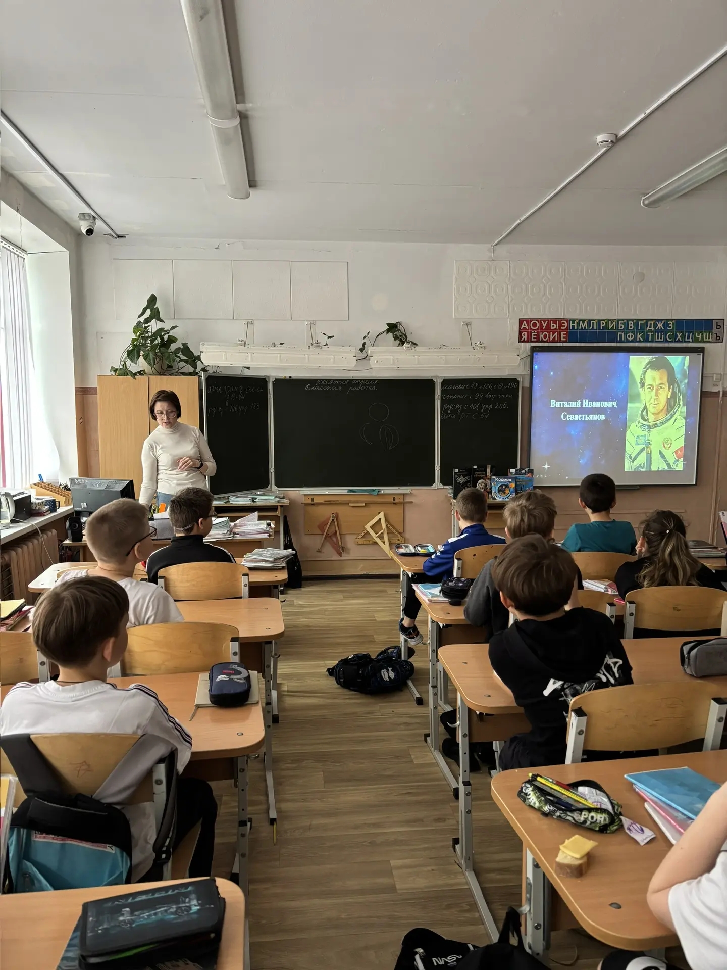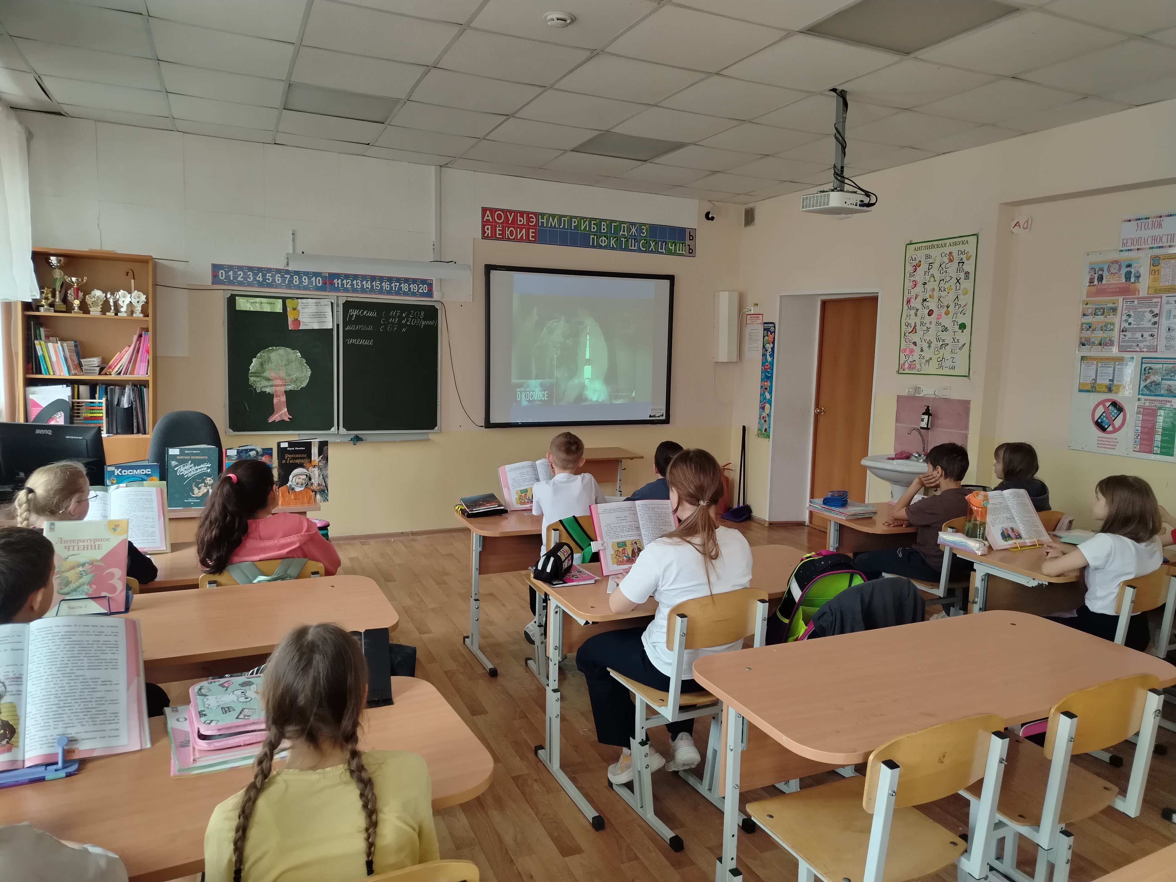 Особый интерес вызвал рассказ о наших земляках – космонавтах-уральцах, которые тоже внесли свой вклад в покорение Вселенной. Для 4 классов была организована викторина под названием "Космическое путешествие".