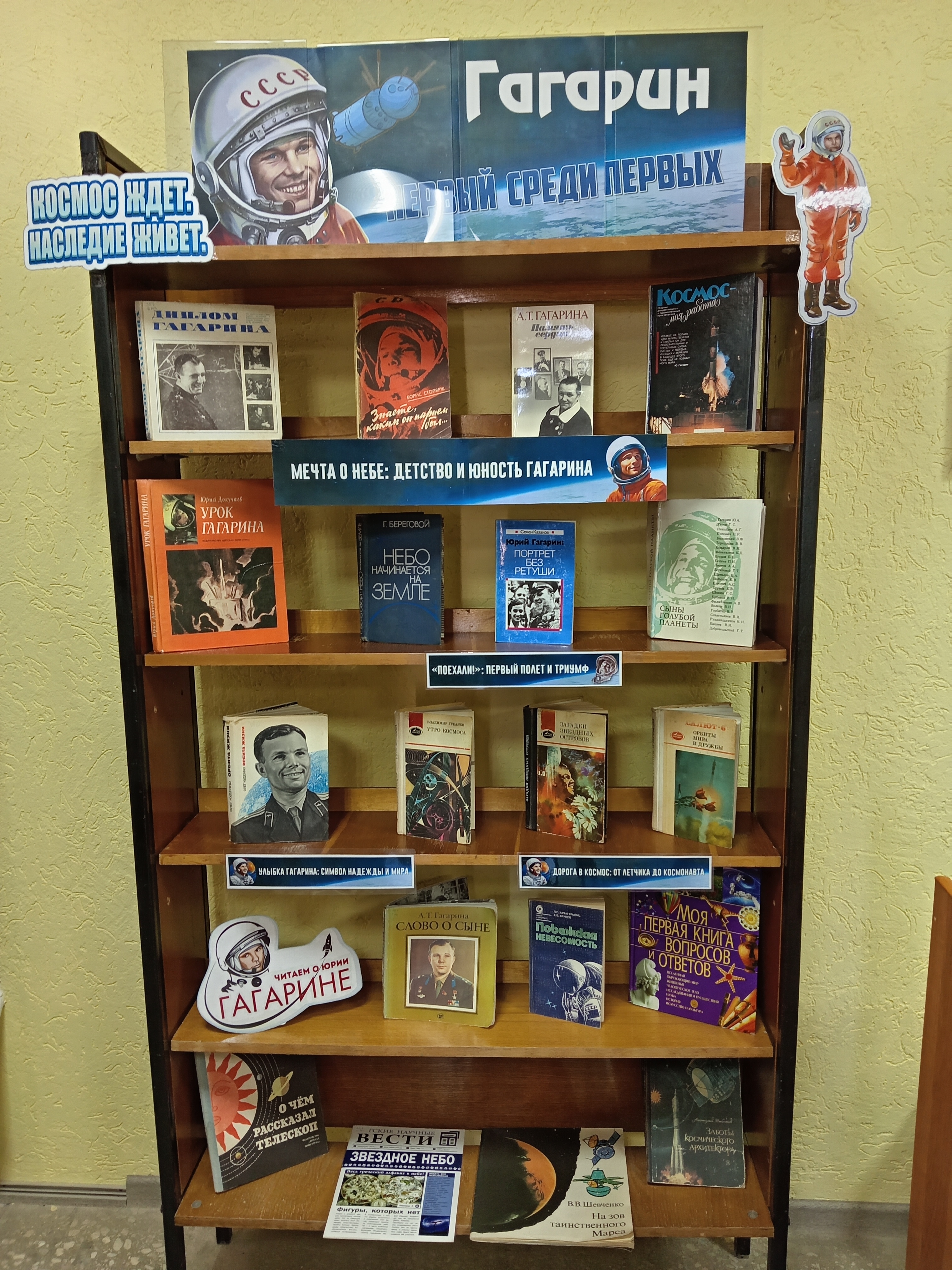 И в честь этой знаменательный даты Центральная библиотека открыла книжно-иллюстративную выставку "Гагарин: Первый среди первых.". Выставка представлена литературой, в которой рассказывается о детстве и юности Юрия Алексеевича Гагарина, о его первом полёте, о карьере от летчика до космонавта, в книгах подробно описан подвиг Гагарина, который продолжает вдохновлять всех тех, кто посвятил себя исследованию космоса.Выставка состоит из нескольких тематических разделов.В разделе "Мечта о небе: детство и юность Ю.А. Гагарина" вы можете ознакомиться с книгами воспоминаний мамы Ю.А. Гагарина.Одна из таких книг это книга «Память сердца» Анны Тимофеевны Гагариной, изданная в 1985 году, в которой мама Юрия Гагарина делится воспоминаниями о сыне, рассказывает, как мальчик из простой крестьянской семьи прошёл путь к вершинам науки и техники и стал человеком, открывшим человечеству дорогу в космос.Также предлагаем вашему вниманию книгу «Слово о сыне» А. Т. Гагариной, матери Юрия Гагарина. Издание вышло в 1983 году и стало бестселлером, выйдя по всему миру более чем миллионным тиражом. В книге рассказывается о жизни семьи первого космонавта, о том, как в семье вырастили трудолюбивых детей, один из которых 12 апреля 1961 года совершил первый космический полёт.Строки из книги мамы Юрия Гагарина: "Вы, конечно, спросите, почему именно его отобрали в отряд космонавтов? Мне, матери, неудобно объяснять это, чтобы кто-нибудь не упрекнул в нескромности: хвалю сына... Поэтому лучше приведу слова летчика-космонавта СССР Виталия Ивановича Севастьянова. На праздновании моего восьмидесятилетия он сказал, что Юрий Гагарин был человеком особенным, что он был нравственным лидером, вожаком коллектива; никогда не выпячивал своих достоинств, но обладал ими; товарищи подражали ему, потому что был он человеком чистым, добрым, глубоко знающим дело, необычайно собранным и трудолюбивым." Как сын вырос таким человеком?Однажды, уже после того, как состоялся первый космический полет, собралась на день моего рождения вся наша семья. Юра поднялся и сказал: «Спасибо тебе, мама, что ты приучила нас с детства трудиться! Приучила каждое дело делать на «отлично». Это в жизни главное».Раздел "Поехали!" : первый полет и триумф" представлена такими книгами как: "Урок Гагарина" Юрия Докучаева, "Юрий Гагарин: портрет без ретуши" Семёна Казакова и другими книгами. "Поехали"- этим словом Юрий Гагарин ознаменовал старт космического корабля. Пуск происходил на космодроме "Байконур".Из книг в разделе "Улыбка Гагарина: символ надежды и мира" вы узнаете как знаменитая улыбка Гагарина стала его визитной карточкой. Она излучала уверенность, радость и победу. Но была ли она всегда безмятежной? За этой улыбкой стояло осознание колоссального риска. Никто не знал, как поведет себя человеческий организм в космосе, вернется ли корабль, выживет ли космонавт. Улыбка на публике была проявлением стального характера и веры в успех.Всего через несколько дней после космического полета Юрия Гагарина отправили в мировое турне под названием «Миссия мира». В десятках стран местные жители встречали его с огромным энтузиазмом. Во время этих туров Гагарин очаровывал людей во всем мире искренней теплотой и скромным поведением. Его улыбка стала одним из самых узнаваемых образов XX века.В разделе "Дорога в космос: от летчик